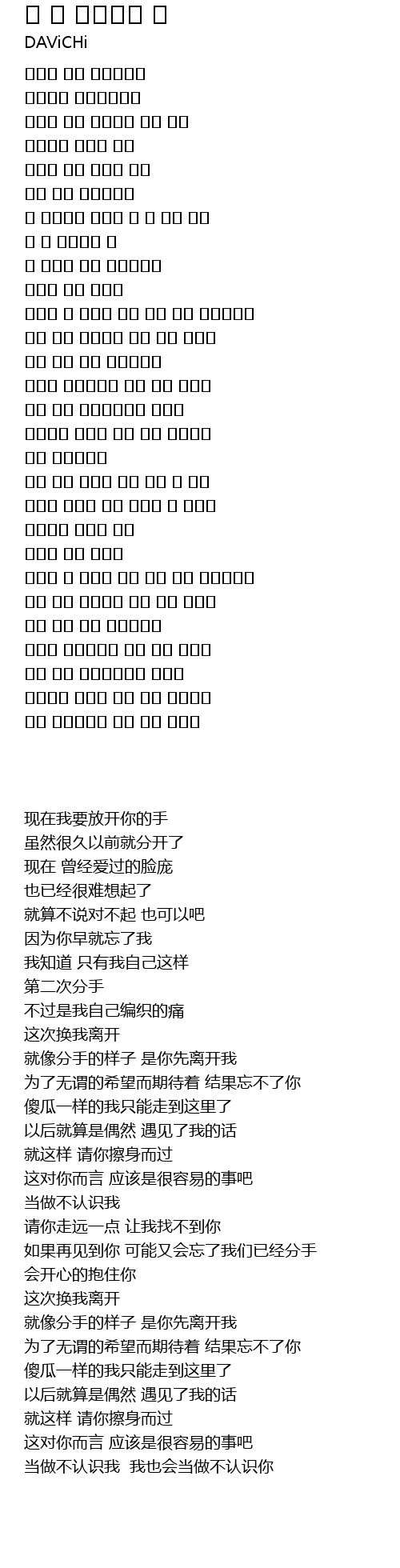 | 歌曲 | 두 번 헤어지는 일 |