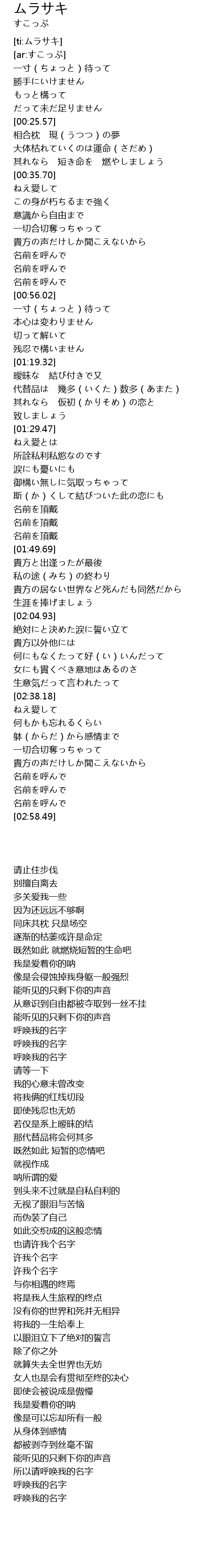 | [02:48.61] | 貴方の声だけしか聞こえないから |