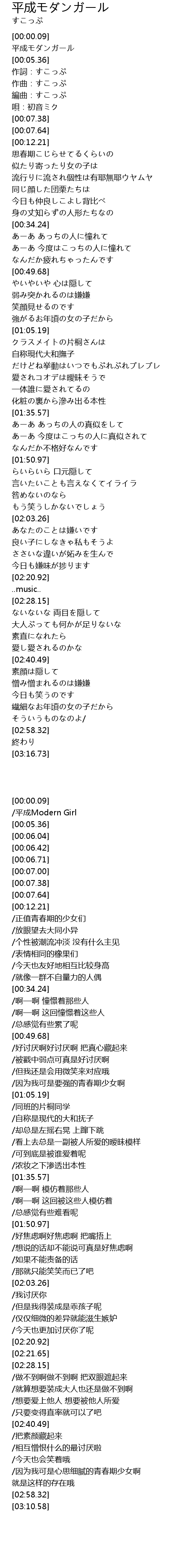 | [00:00.71] | /平成Modern Girl |