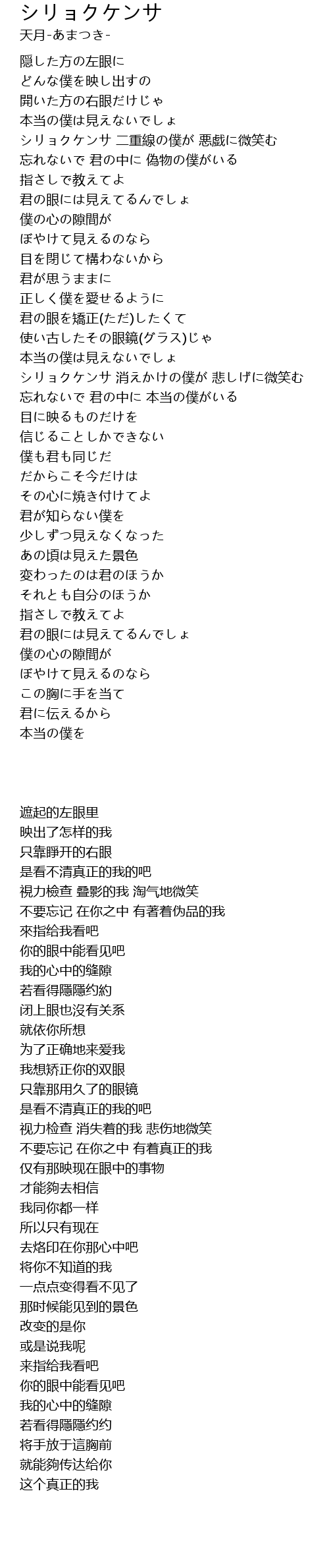 | [00:37.20] | 視力檢查 叠影的我 淘气地微笑 |
