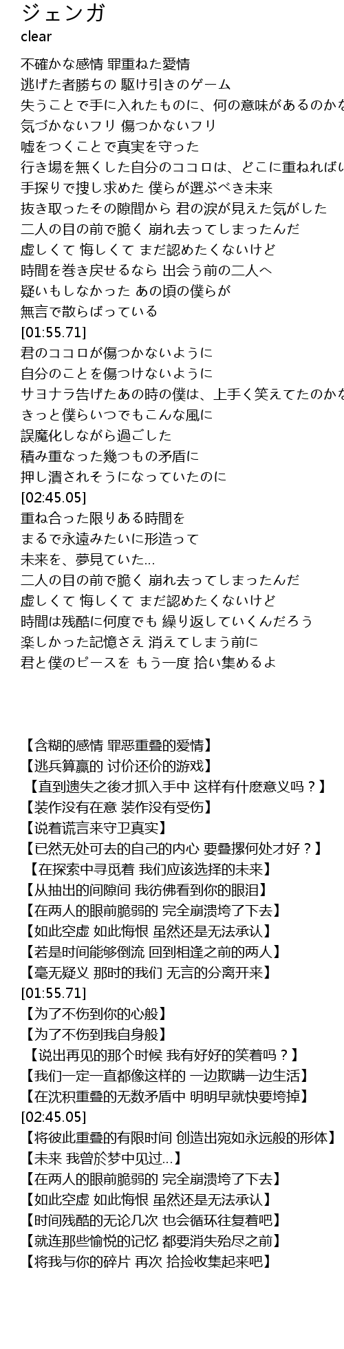 | [04:13.76] | 【将我与你的碎片 再次 拾捡收集起来吧】 |