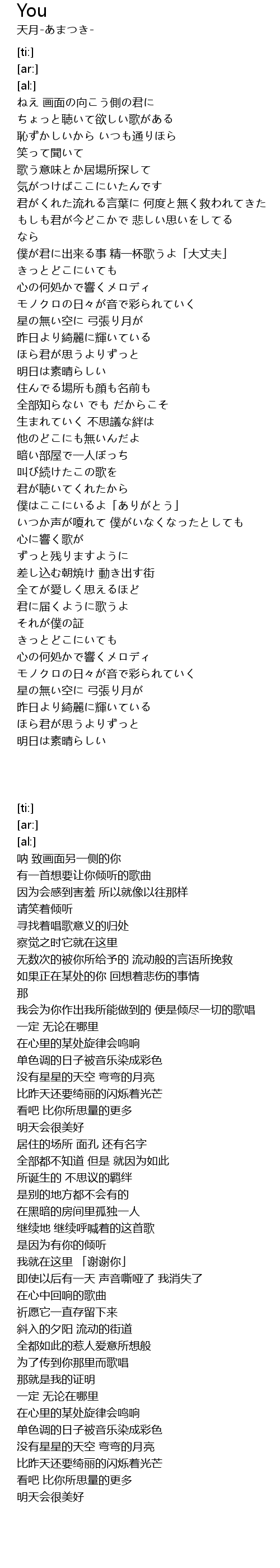 | 歌曲 | You |
