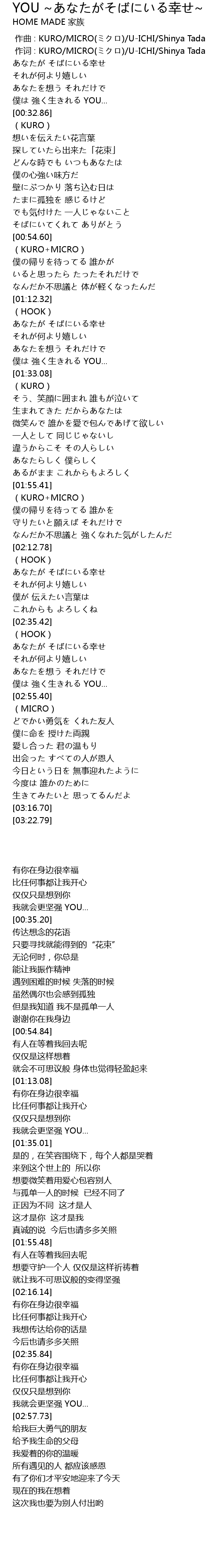 | [00:00.00] | zuo qu : KURO MICRO UICHI Shinya Tada |
