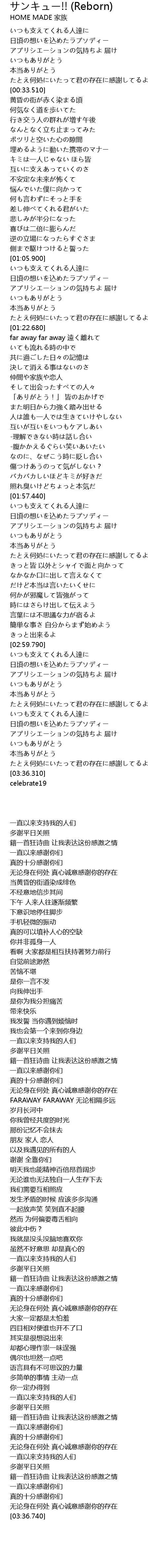 | [01:14.380] | 一直以来感谢你们 |