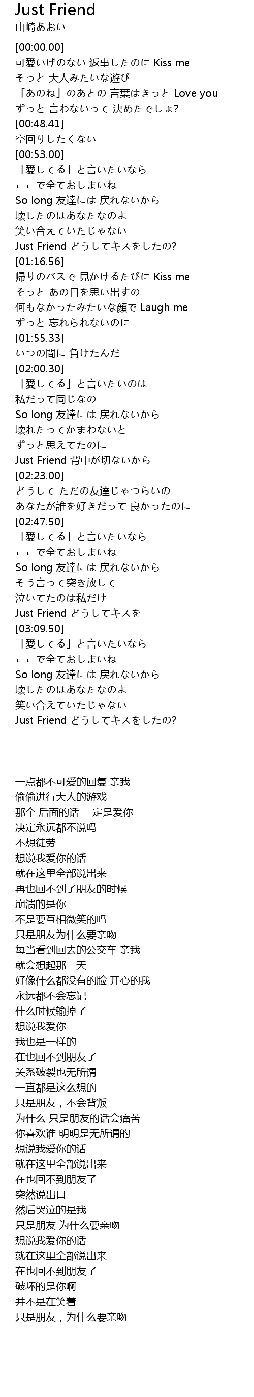 | [01:11.58] | Just Friend どうしてキスをしたの? |