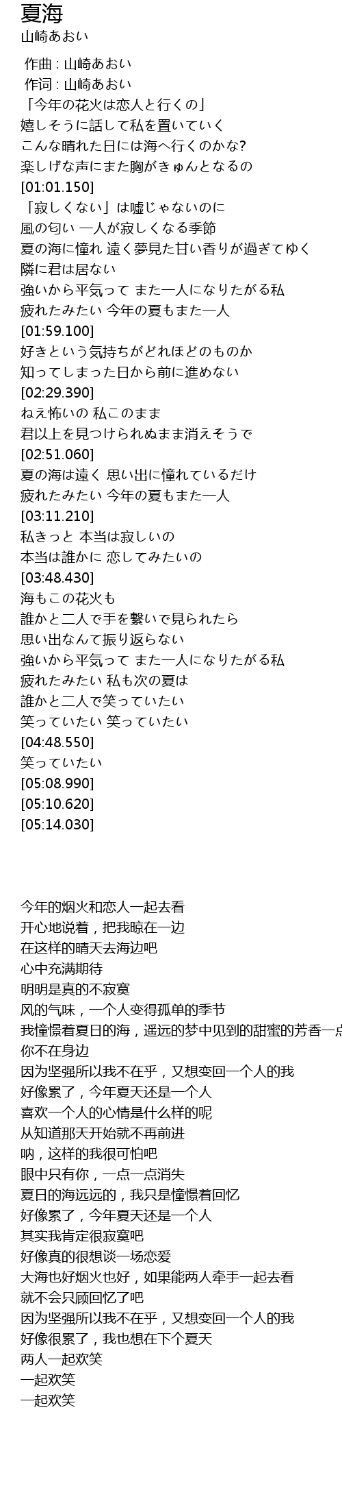 | [03:02.520] | 疲れたみたい 今年の夏もまた一人 |