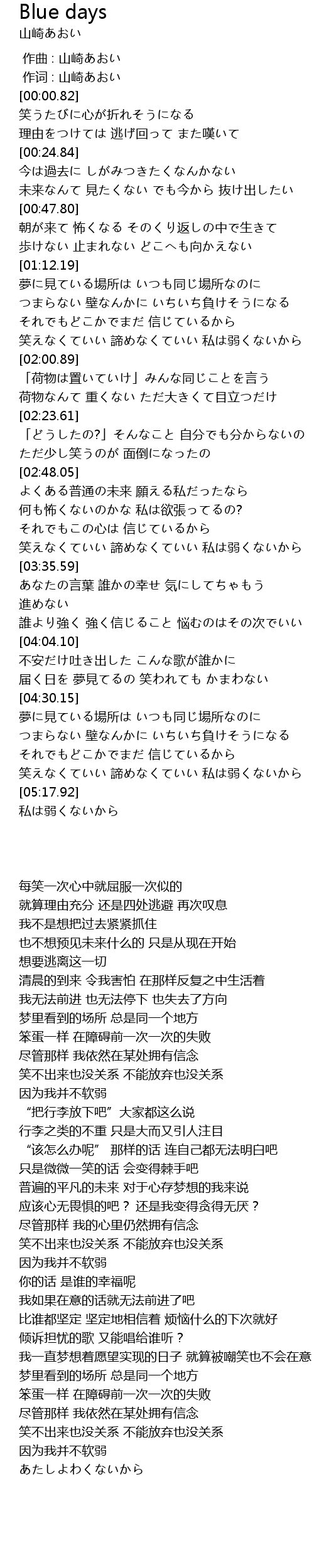 | [03:24.42] | 笑えなくていい 諦めなくていい 私は弱くないから |