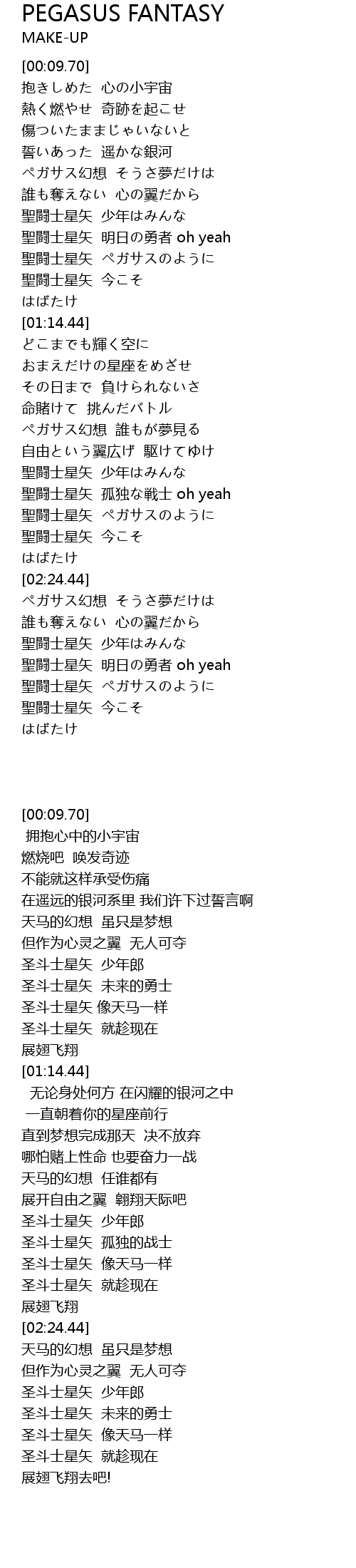 | [01:45.49] | ペガサス幻想 誰もが夢見る |
