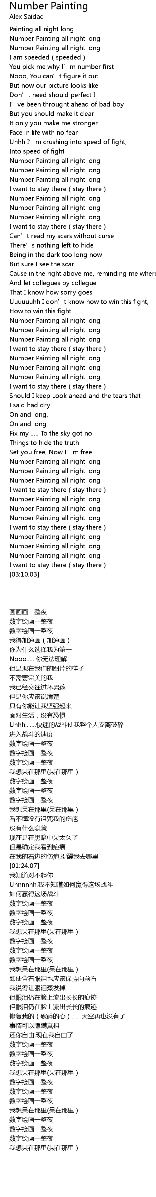| [03:03.68] | Number Painting all night long |