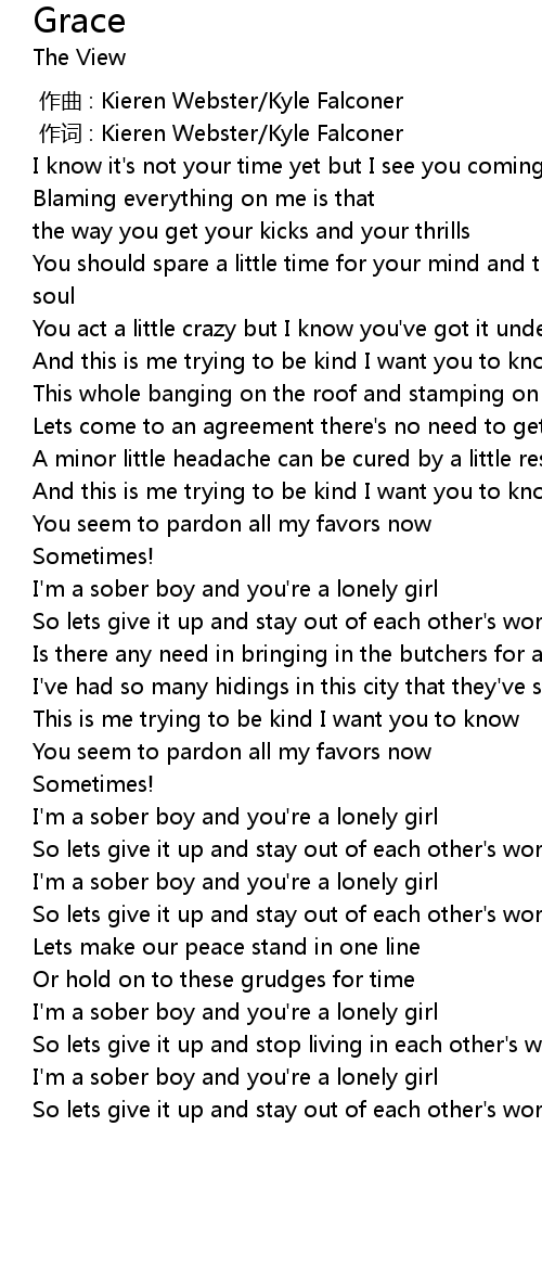 | [01:26.490] | I' m a sober boy and you' re a lonely girl |