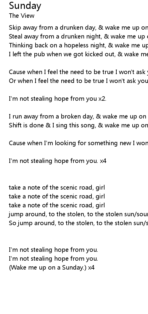 Thinking back on a hopeless night, & wake me up on Sunday.