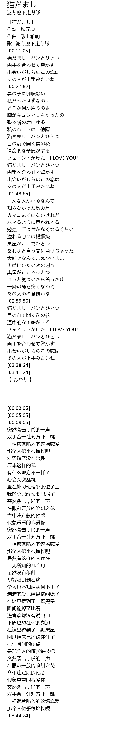 | [03:20.71] | フェイントかけた I LOVE YOU! |