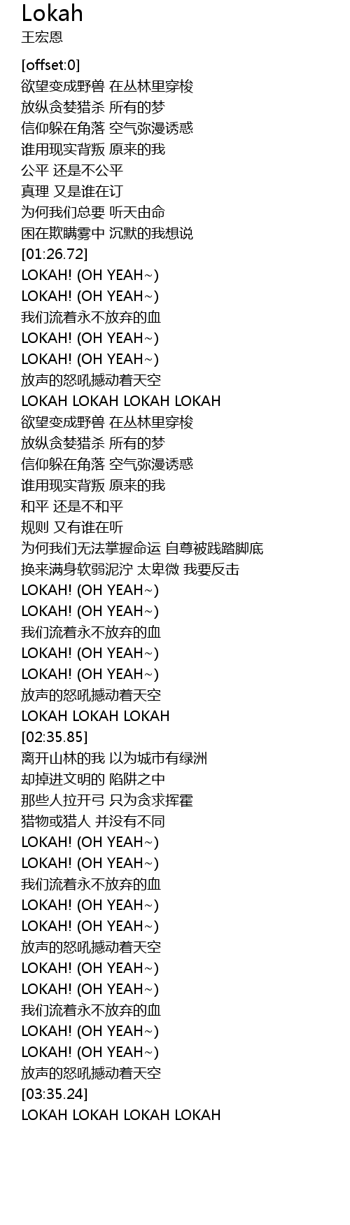 | [03:35.78] | LOKAH LOKAH LOKAH LOKAH |