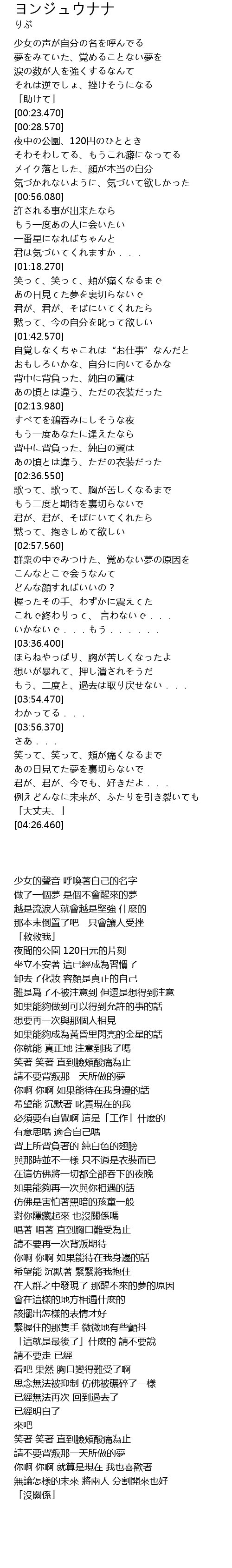 | [00:34.640] | 夜間的公園 120日元的片刻 |