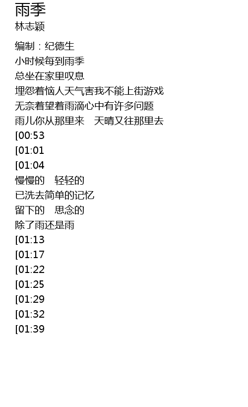 | [00:40] | 无奈着望着雨滴心中有许多问题 |