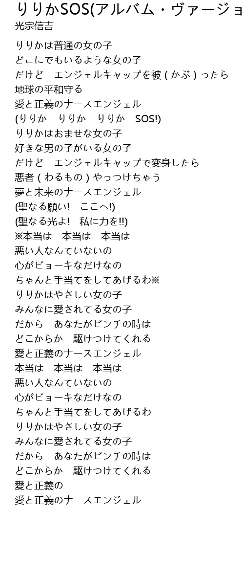 | [00:56.45] | (りりか りりか りりか SOS!) |