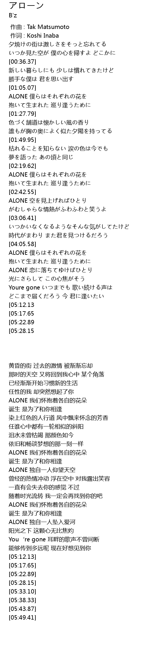 | [05:38.33][05:17.65] | You know, Weve all alone |