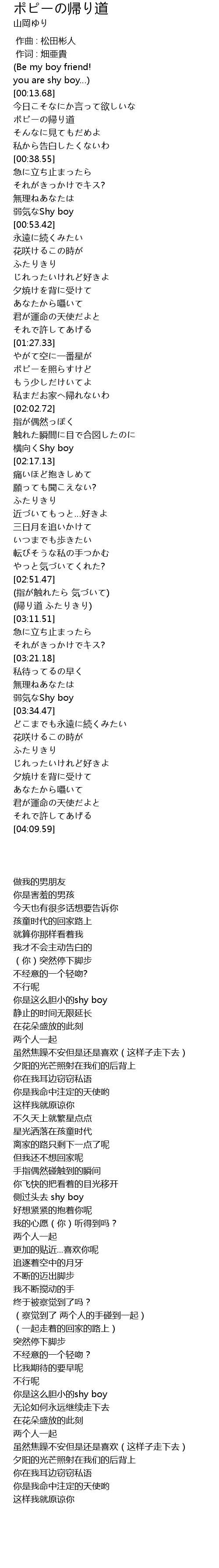 | [02:13.09] | 横向くShy boy |