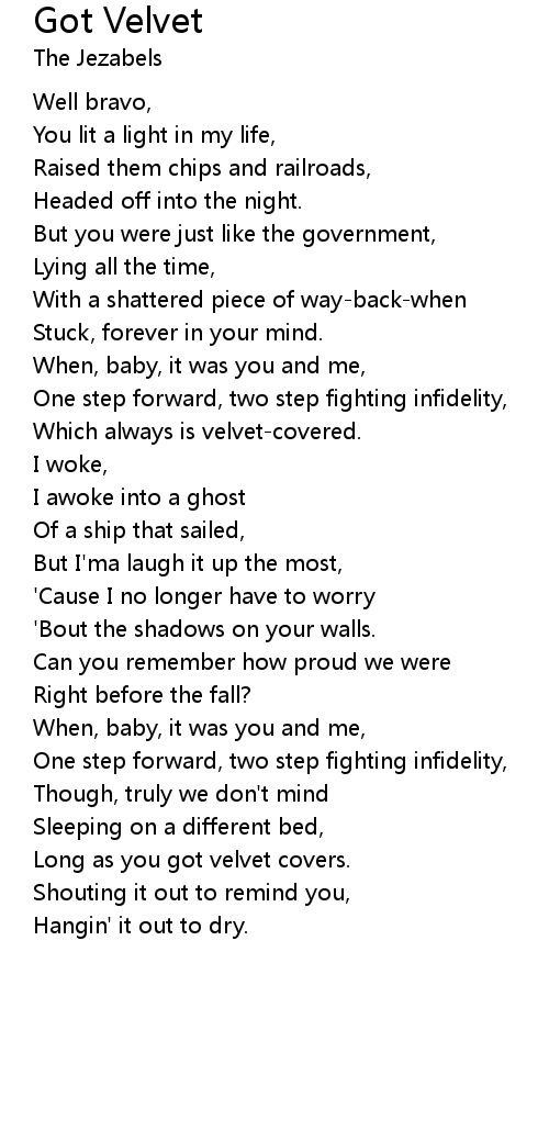 Long as you got velvet covers. |