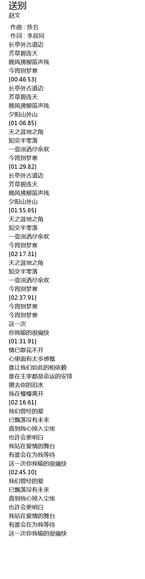 | [00:01.00] | 作词 : 李叔同 |