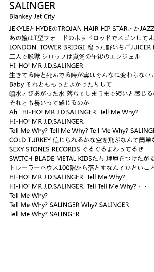 | HI-HO! MR J.D.SALINGER. Tell Tell Me Why?・・ | |