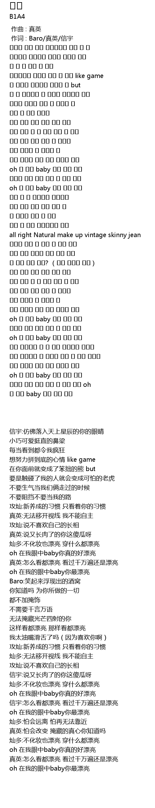 | [00:01.00] | 作词 : Baro/真英/信宇 |