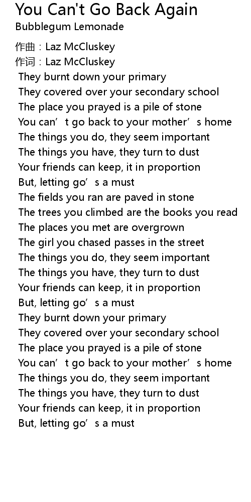 | 歌曲 | You Can't Go Back Again |