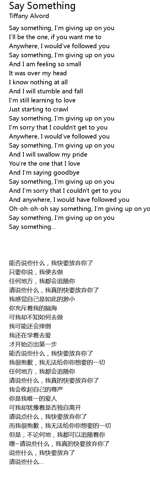 Oh-oh-oh-oh say something, I'm giving up on you |
