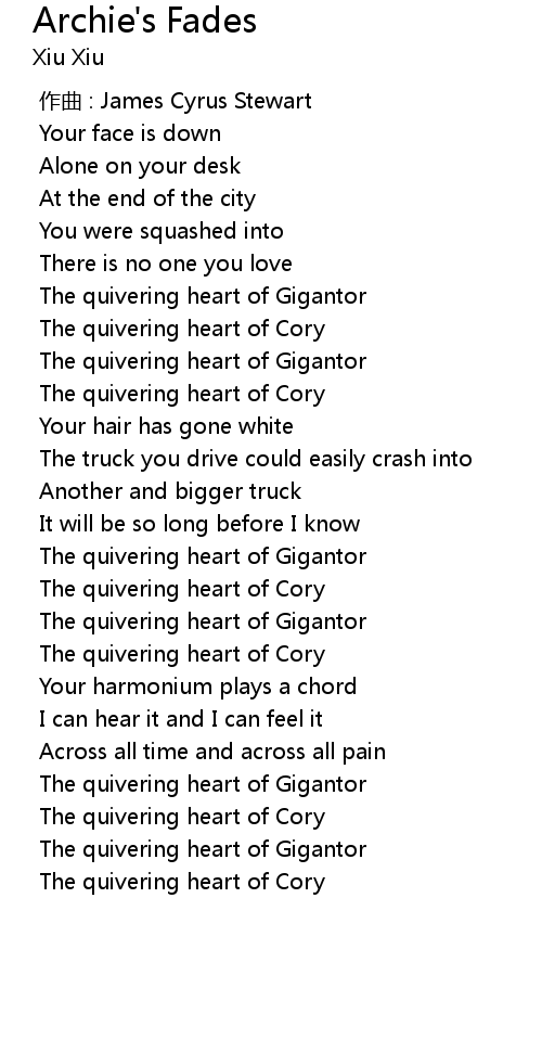 | [02:49.714] | The quivering heart of Cory |