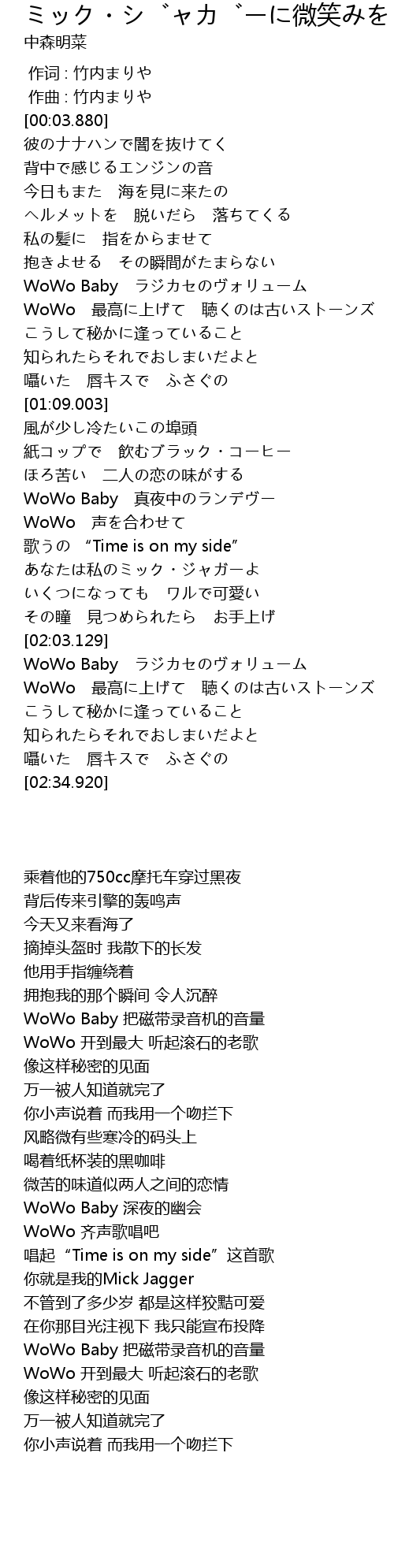 | [01:33.323] | WoWo Baby 真夜中のランデヴー |