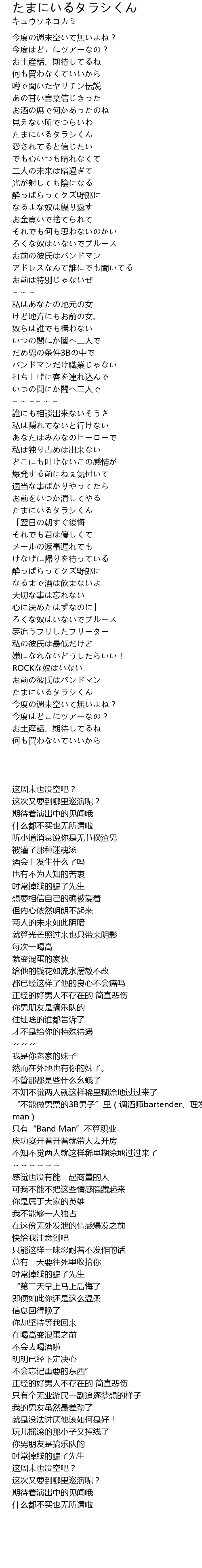 | [00:55.10] | たまにいるタラシくん |