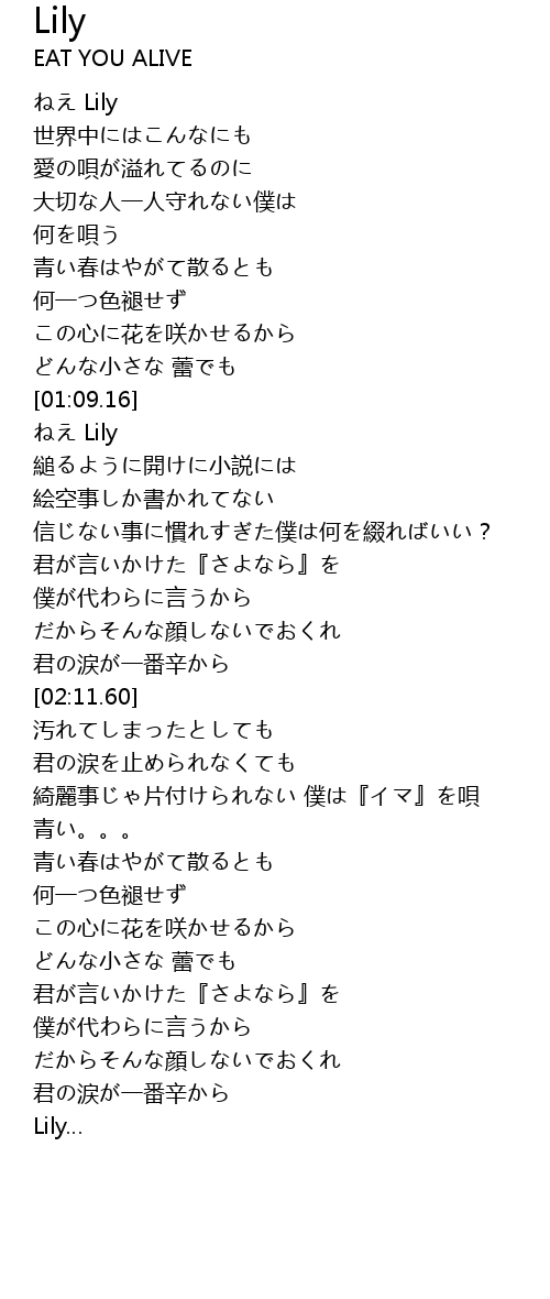 | [02:50.82] | 綺麗事じゃ片付けられない 僕は『イマ』を唄 |