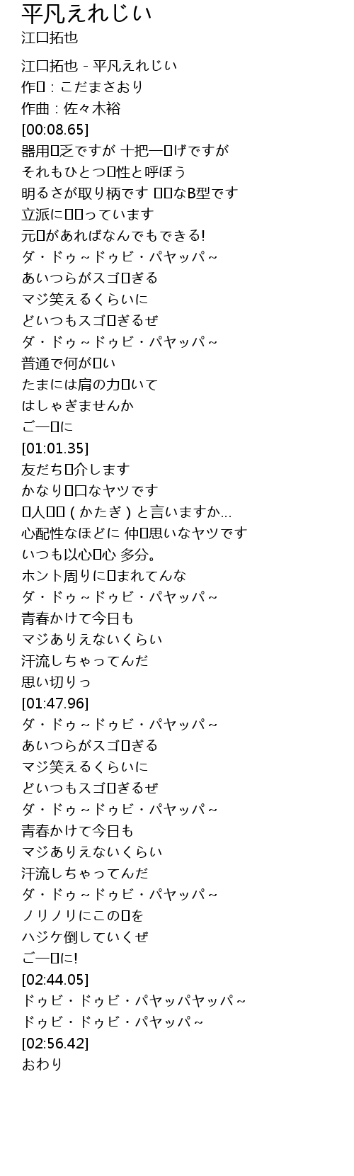 | [00:-0.02] | 江口拓也 - 平凡えれじい |