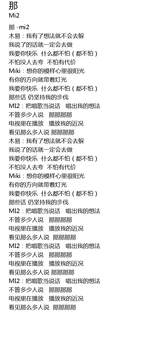 | [03:18.86] | MI2:把唱歌当说话 唱出我的想法 |