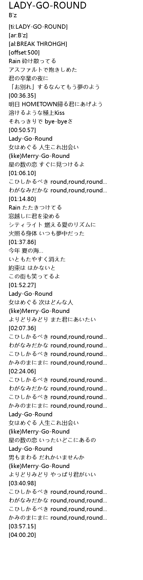 | [03:25.48] | Lady-Go-Round |