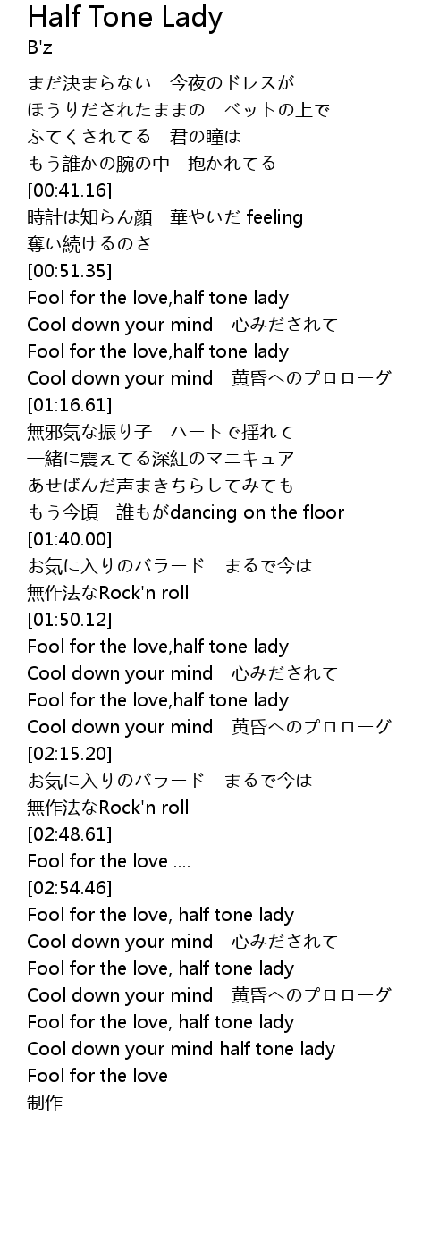 | [00:53.82] | Fool for the love, half tone lady |