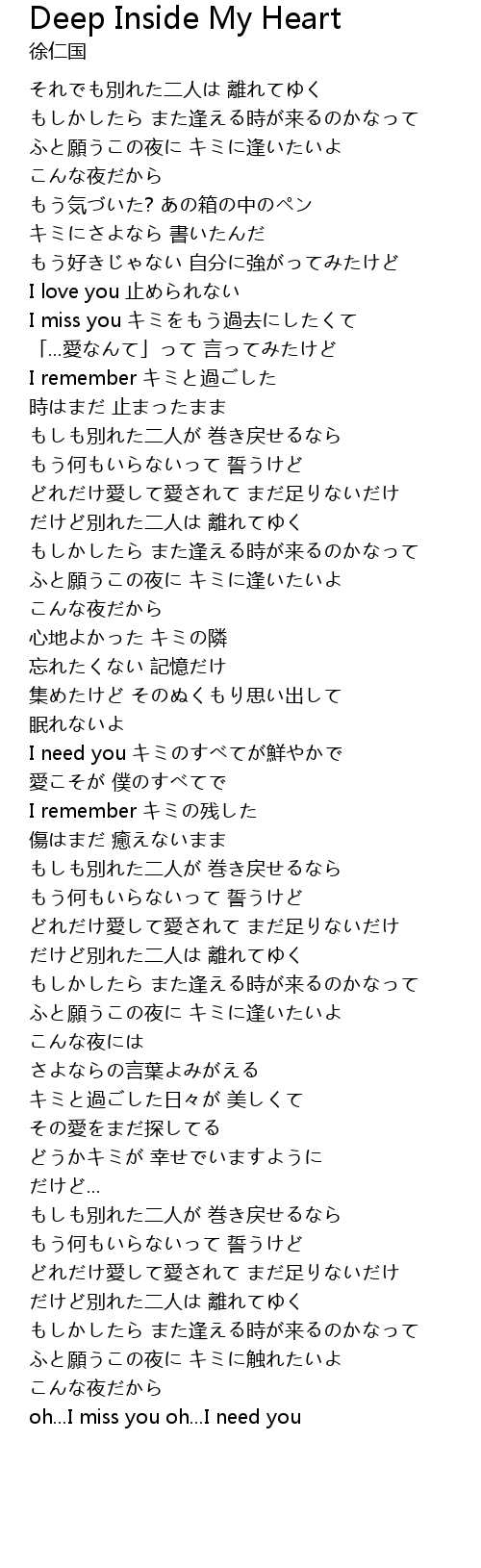 | 歌曲 | Deep Inside My Heart |