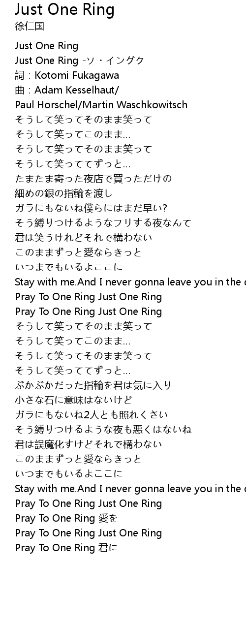 | [01:30.629] | Pray To One Ring Just One Ring |