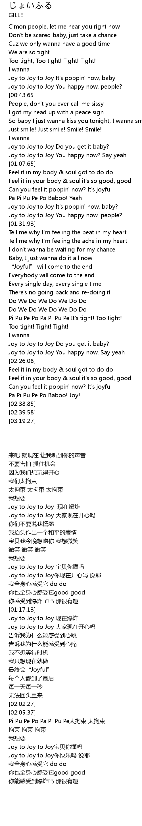 | [00:37.78] | Joy to Joy to Joy You happy now, people? |