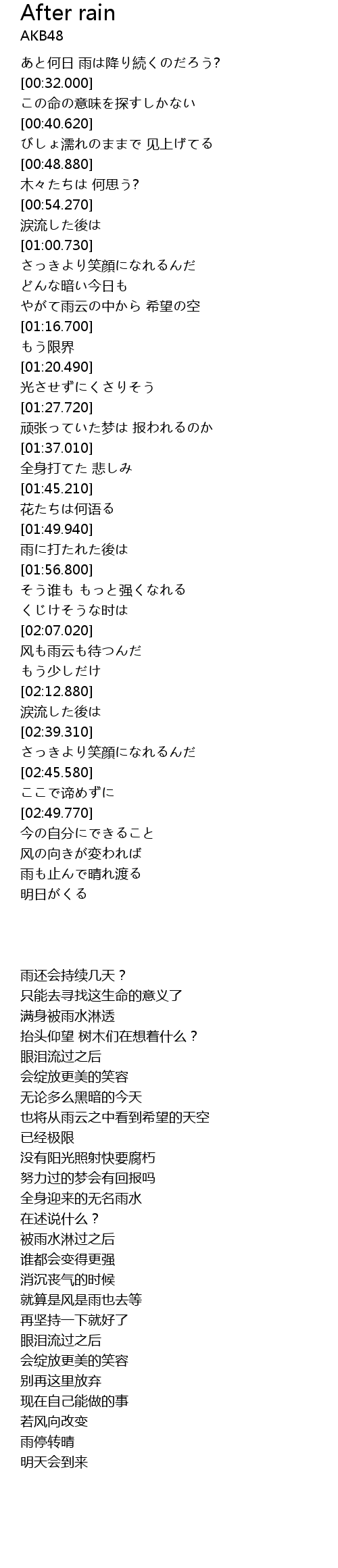 | [00:22.270] | あと何日 雨は降り続くのだろう? |