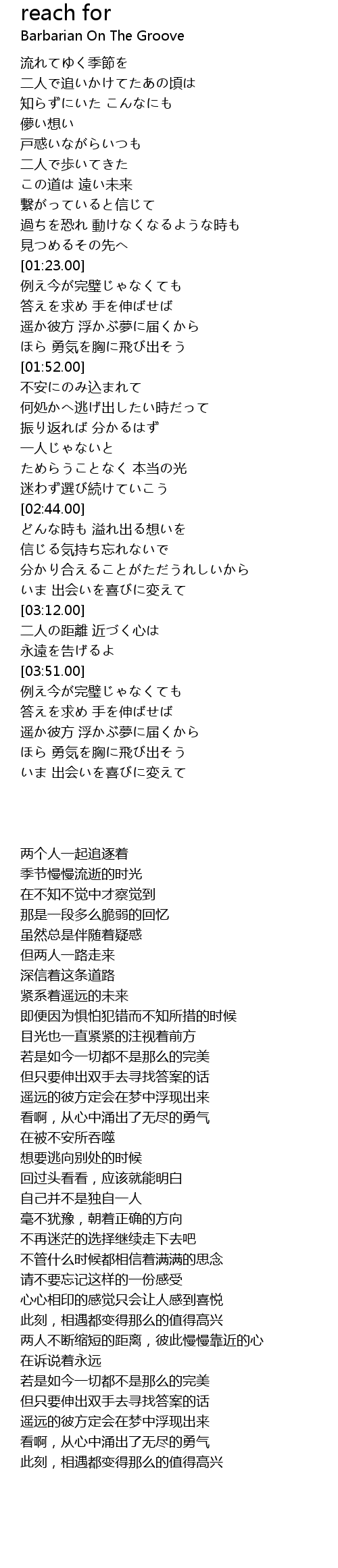 | 歌曲 | reach for |