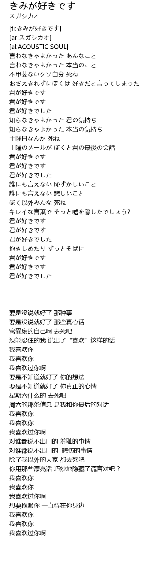 | [00:48.35] | 没能忍住的我 说出了“喜欢”这样的话 |