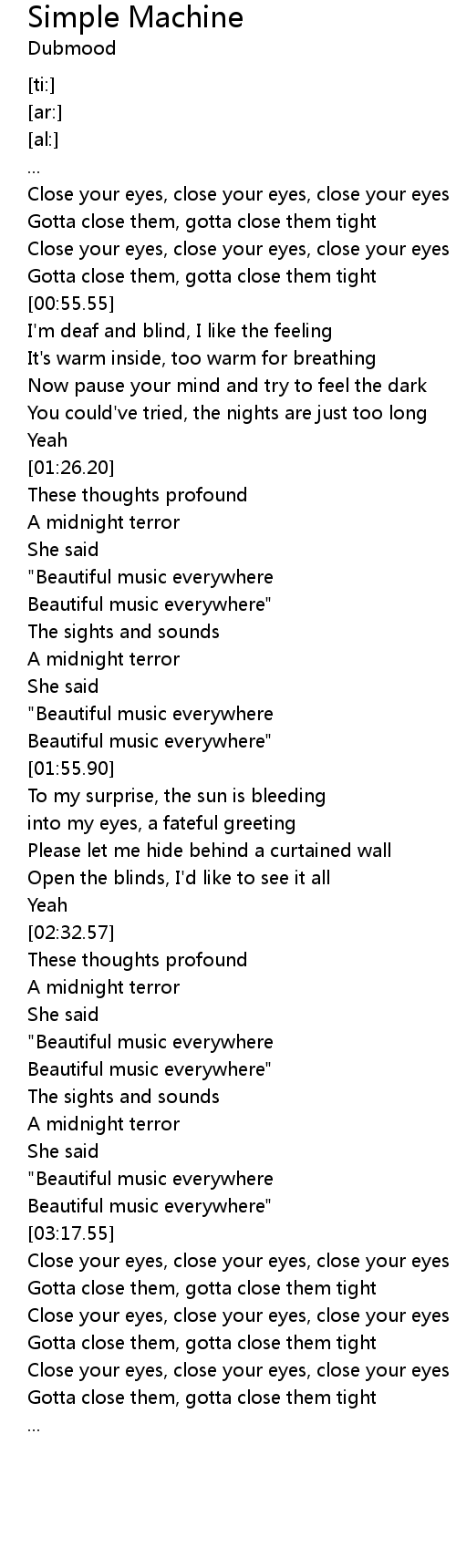 | [00:45.63] | Gotta close them, gotta close them tight |