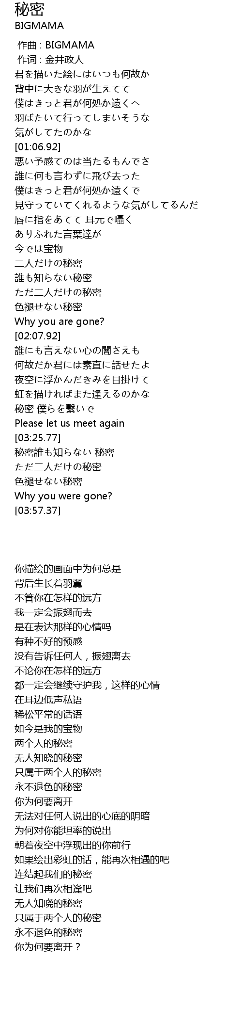| [00:00.00] | zuo qu : BIGMAMA |