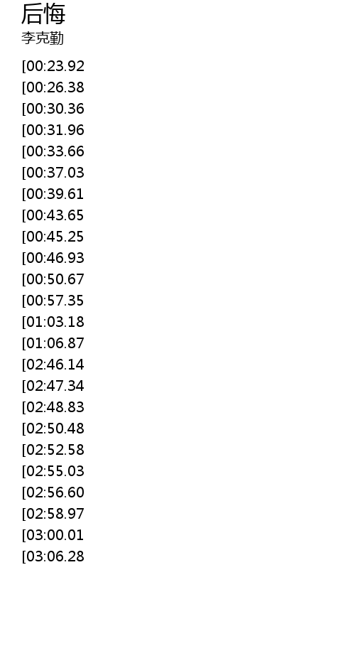 | [03:33.35][03:06.28][01:30.00] | 后悔过去与你将心占据 |