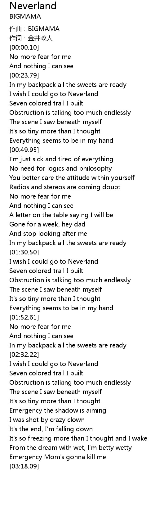 | [01:33.01] | I wish I could go to Neverland |