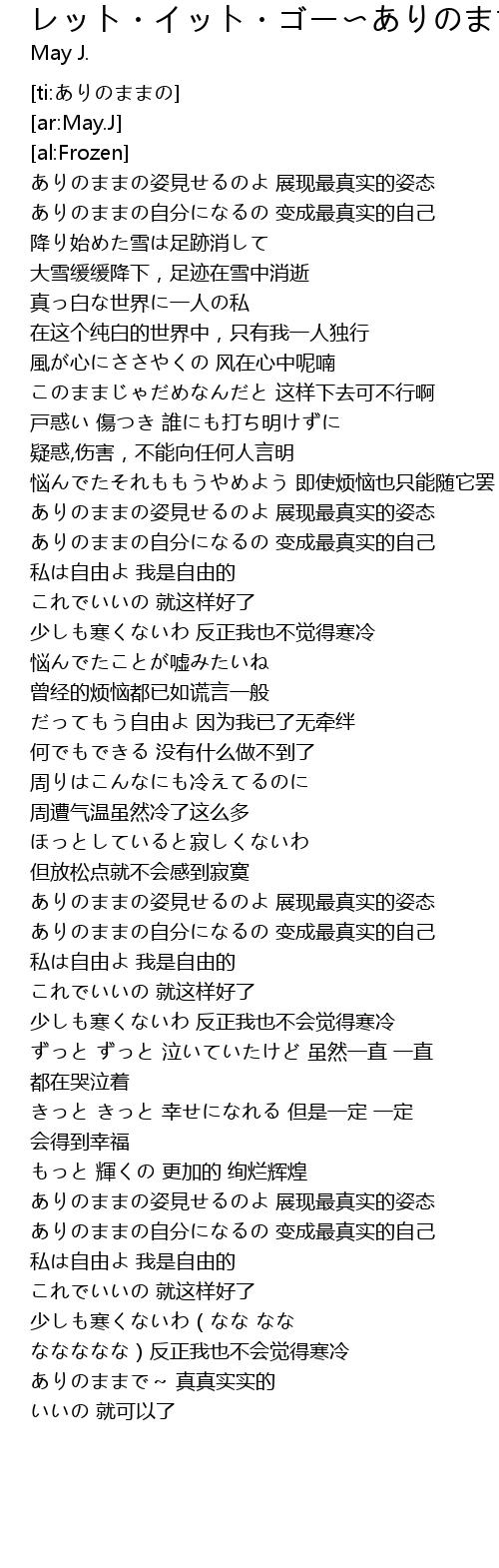 | [00:07.59] | ありのままの自分になるの 变成最真实的自己 |
