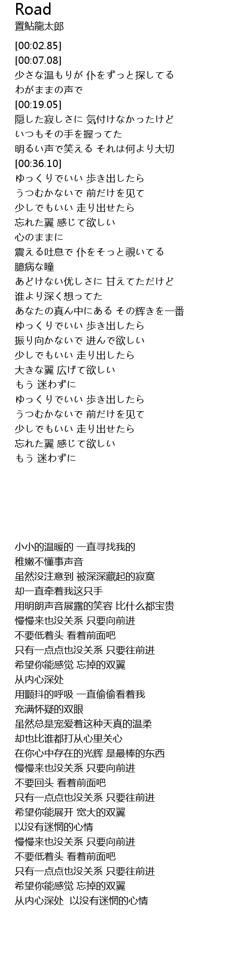 | [00:43.14] | ゆっくりでいい 歩き出したら |