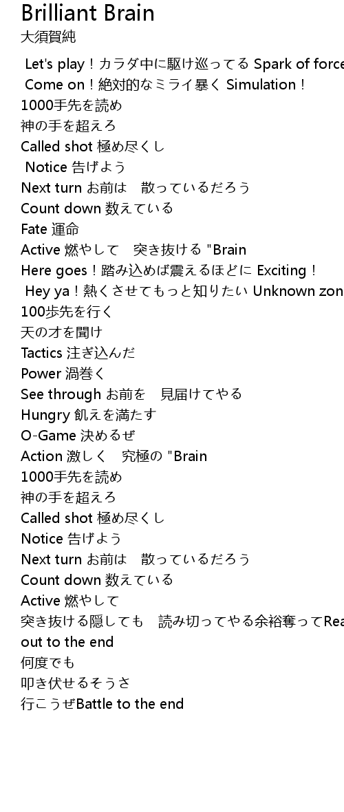 | [01:09] | Active 燃やして 突き抜ける "Brain |