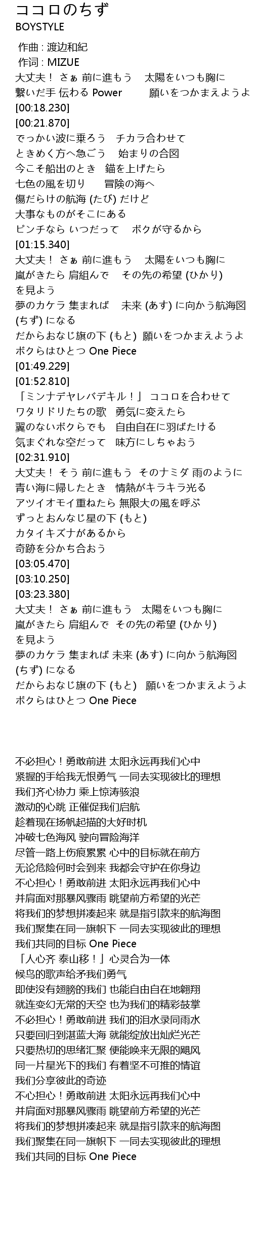 | [03:55.490] | ボクらはひとつ One Piece |